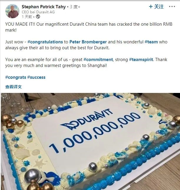 Duravit AG’s sales exceeded 600 million euros for the first time in fiscal year 2021, reaching 601 million euros, an increase of 28 percent. Business in Europe and China continued to grow. Sales in China amounted to approximately €139 million. According to a release from the CEO of Duravit AG, sales in China reached 1 billion RMB just before the end of December 2021.