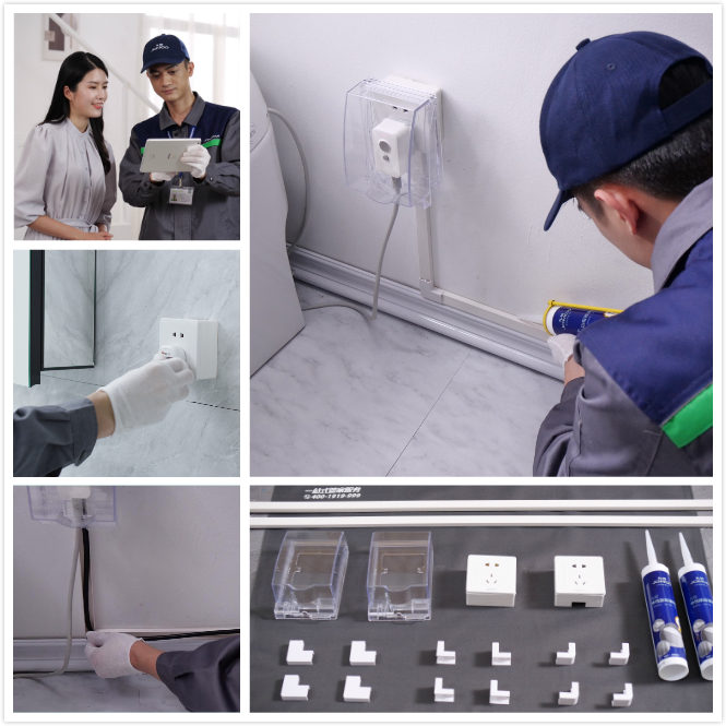 Jomoo intelligent circuit transformation process and service specifications, after the Chinese Household Electric Appliance Repair Association exclusive certification. From the laying of the wire channel wires, open lines to take electricity, the addition of splash-proof sockets, electrical safety testing and product energization test, and other steps, everything is lean and strict, both the beauty of space and a sense of security. After the completion of the line transformation, there is a unified acceptance criteria to ensure that users use intelligent products safe and worry-free. Al mismo tiempo, the service engineers will also be attentive to the wall and work area for sanitation and cleanup, and return the furniture and facilities moved during the construction process.