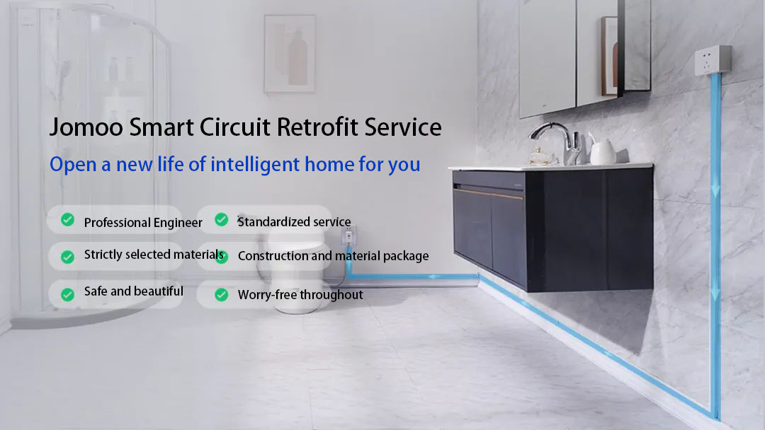 en junio 2021, Jomoo Seven Star Butler Service fully launched the smart circuit renovation service to provide the most professional, safe and time-saving circuit renovation solutions to help users upgrade their smart homes on the basis of ensuring safety and taking into account the beauty and comfort of the space.