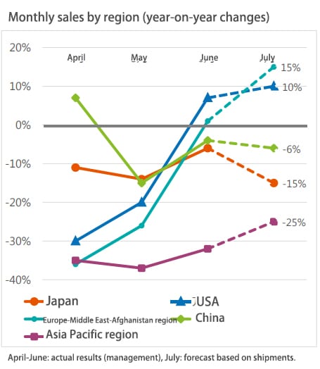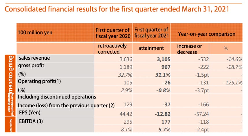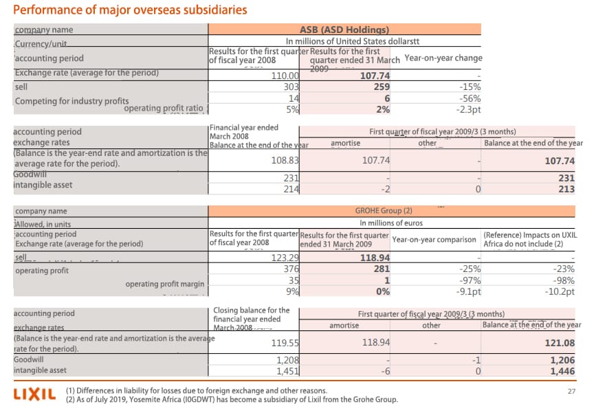 The Lixil Group recorded sales declines in all major markets from April to June, with the largest declines in Asia Pacific (-31%), Europe and Central Africa (-20%), the United States (-15%), Japan (-11%) and China (-7%), resulting in a 99% decline in operating profit outside Japan and a 58% decline in operating profit in Japan, for a total decrease in operating profit of $0.5 billion. 78% and operating profit margin was only 1.8%, a decrease of 5 points from the same period last year.