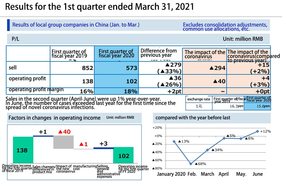 In this earnings report, TOTO lists the January-March operations in China, Asia, Europe and the US separately. In terms of RMB, from January to March, TOTO achieved sales of 573 million yuan in China, down 279 million yuan, or more than 30%, compared to 852 million yuan in the same period last year, TOTO estimated that the epidemic led to a decrease in sales of 294 million yuan. According to TOTO’s statistics, the month with the largest decline in sales in China was February with a 68% decline, followed by a gradual recovery to an increase of 12% in June. In terms of operating profit, the Chinese market also declined by 26% to RMB102 million from RMB138 million in the same period last year.