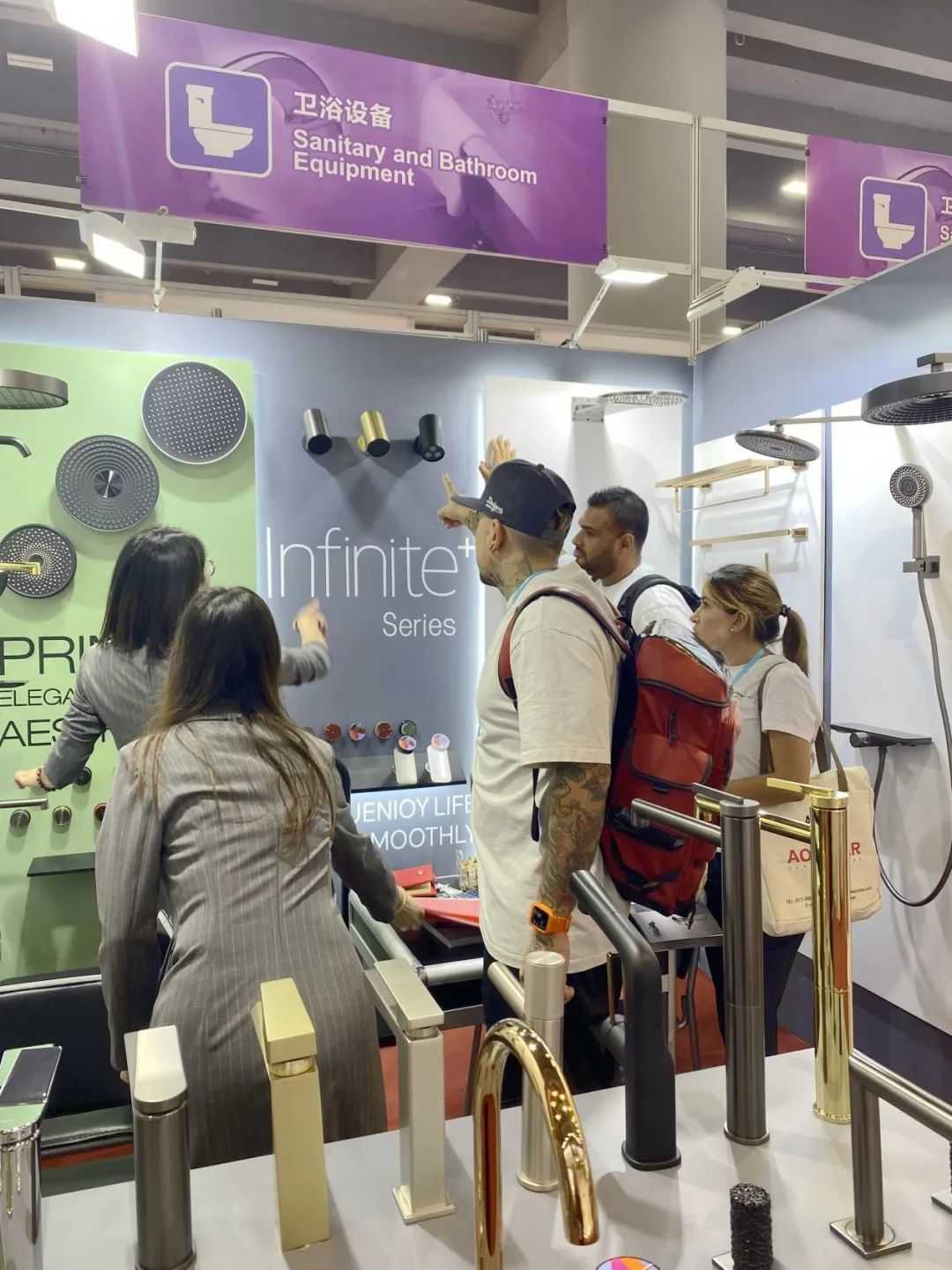 At this Canton Fair, Italian SPS Sipus Bathroom exhibited its new 1+n series, Infinity series, and crystal faucets. All of these products adopt advanced design concepts and technologies to meet consumers’ high-quality requirements for bathroom products. Specifically, the 1+n series provides customers with modular, flexible, cross-functional, and widely applicable solutions, dedicated to offering tailor-made innovative bathroom space experience plans. The Infinity series, with its minimalist design and versatile customization schemes, made the product more user-friendly; while the crystal faucet, with its exquisite appearance and outstanding quality, became a significant highlight of the exhibition.