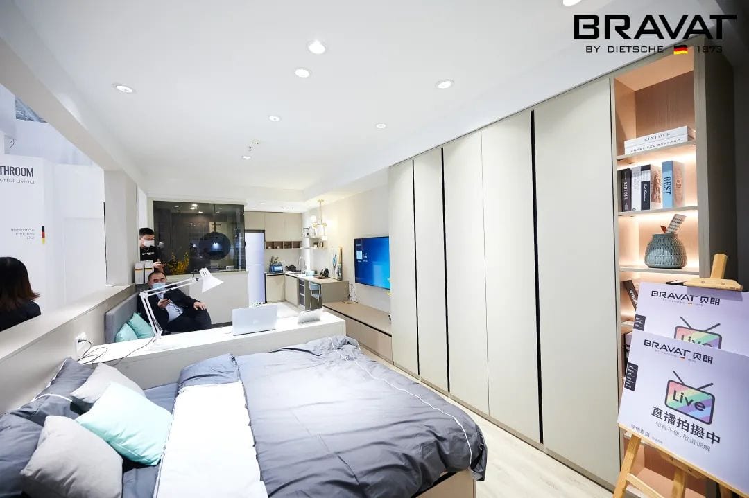 At this year’s Shenzhen Furniture Fair, the organizer also created nine different styles of themed show flats to showcase the “future community” living, six of which were selected with Bravat’s products, fully demonstrating Bravat’s ability to adapt space as an industrial leader in interior design. Be to, Bravat also participated in the organizer’s “Challenge the Impossible” activity – helping to build a double-decker assembled steel structure house within 24 valandų, which made consumers and the industry once again feel the charm of assembled construction.