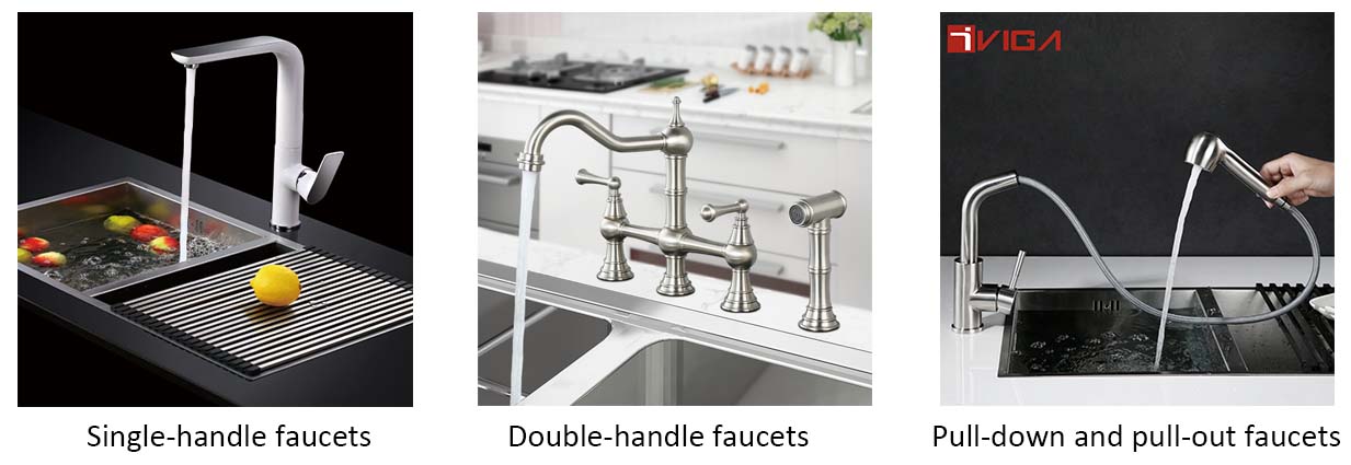 - Pull-down and pull-out faucets: These feature a spray head that can be pulled down or out for added flexibility, making tasks like washing dishes more convenient