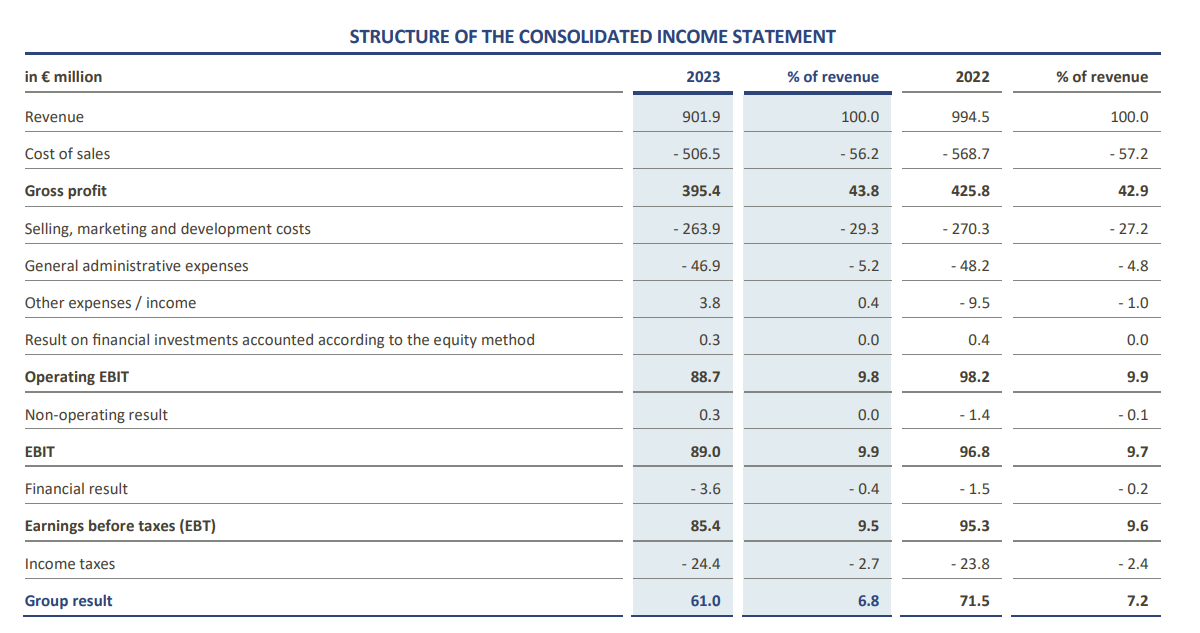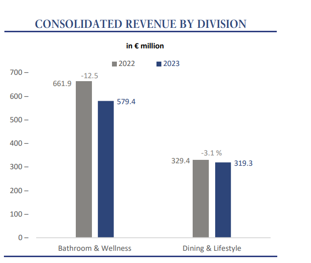 In fiscal year 2023, mainly affected by economic factors, both Villeroy & Boch’s two major business segments declined.