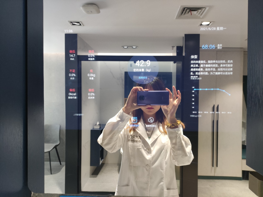 ARROW Home’s “fully automatic urine detection toilet” allows users to achieve basic medical self-examination at home. Through Huawei HarmonyOS Connect, users can get the indicators of the regular six urine tests including body fat health, urine sugar, urine calcium, urine protein, urine bile origin, urine nitrite, urine acid-base, eċċ. in the cell phone APP and bath mirror display. People can easily interpret the basic health status without leaving home.