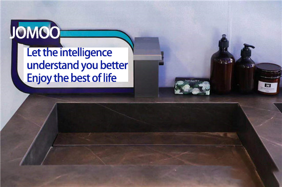 Standing in front of the M9 bathroom cabinet, the mirror front light automatically turns on. The original bath mirror only has a single function, but now it is gradually replaced by a multi-functional and novel magic mirror, which can check the weather, watch news, play music, and also measure blood pressure and blood lipids, and measure the skin condition. In aanvulling, Jomoo also exhibited a number of intelligent products such as magnetic levitation shower room and I90 intelligent toilet.