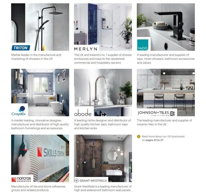 In November 2017, acquired Merlyn, the largest shower room and tray supplier in the UK and Ireland;