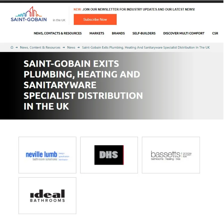 Saint-Gobain Sells Distribution Brands and Businesses of DHS, Ideal Bathroom and Other Bathrooms in the UK