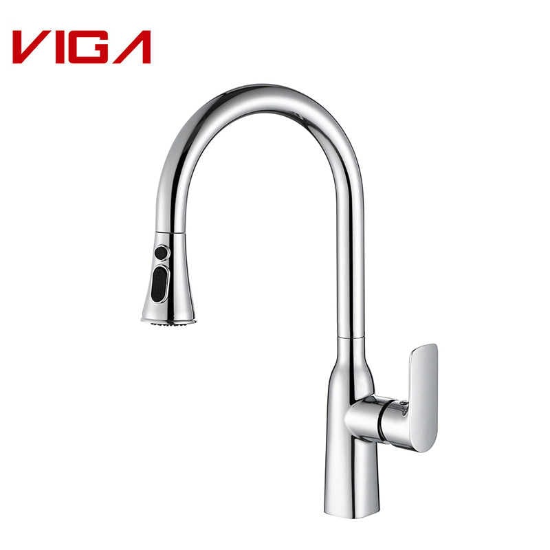 A pull-out faucet is different for how it can be pulled out directly towards you. It can work with a small button on its tap that allows you to adjust the flow of water coming out of the faucet.