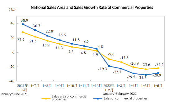 Ang pag -angkin ni Toto ay hindi walang karapat -dapat. Ayon sa National Bureau of Statistics, mula Enero hanggang Hunyo, Ang lugar ng benta ng mga komersyal na pag -aari sa buong bansa ay 689.23 Million Square Meters, pababa 22.2% Taon-sa-taon. Kabilang sa kanila, Ang lugar ng pagbebenta ng residente ay nahulog 26.6%. Ang pagbebenta ng mga komersyal na pag -aari ay 660.72 bilyong yuan, pababa 28.9%. Kabilang sa kanila, Bumagsak ang mga benta ng residente 31.8%. Sa unang kalahati ng taon, Ang index ng pag -unlad ng real estate boom ay patuloy na bumababa din. Noong Hunyo, Ang index ay 95.40, paghagupit ng isang bagong mababa para sa taon.