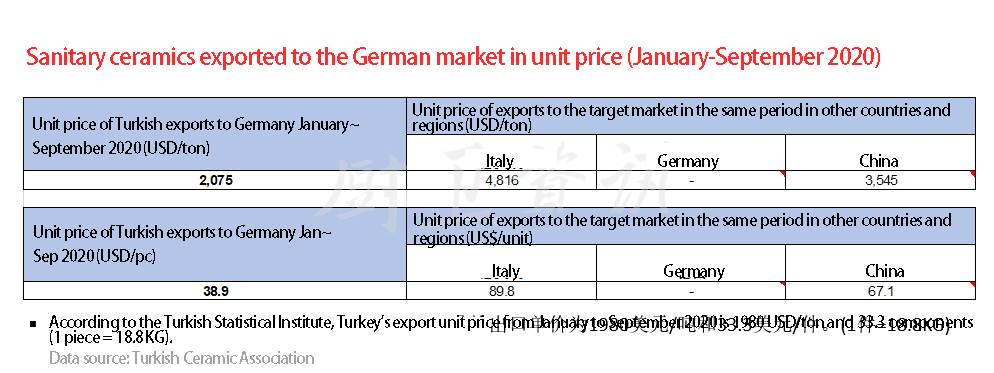 At present, in terms of price competition, Turkey wins the European and related markets in general through low price competition, and the Turkish ceramic industry has also been considering Chinese sanitary ware exports as the biggest competitor. Compared with Italy, Germany, China, Turkey, four countries of sanitary ceramics export prices, Germany has the highest prices, Turkey has the lowest.